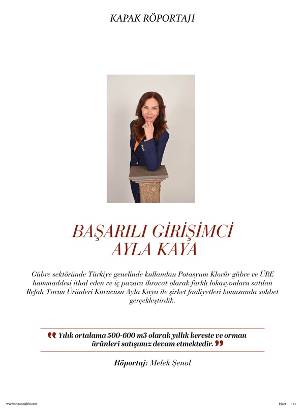 Gübre sektöründe Türkiye genelinde kullanılan Potasyum Klorür gübre ve ÜRE hammaddesi ithal eden ve iç pazara ihracat olarak farklı lokasyonlara satılan Refah Tarım Ürünleri Kurucusu Ayla Kaya ile şirket faaliyetleri konusunda sohbet gerçekleştirdik. Ayla Kaya Refah Tarım Kurucu