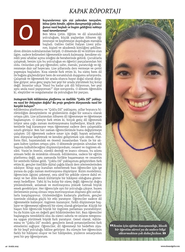 Mina Çetin Çoklu Dil Eğitmeni She and Girls Dergisi Kapak Röportajı Aralık 2025