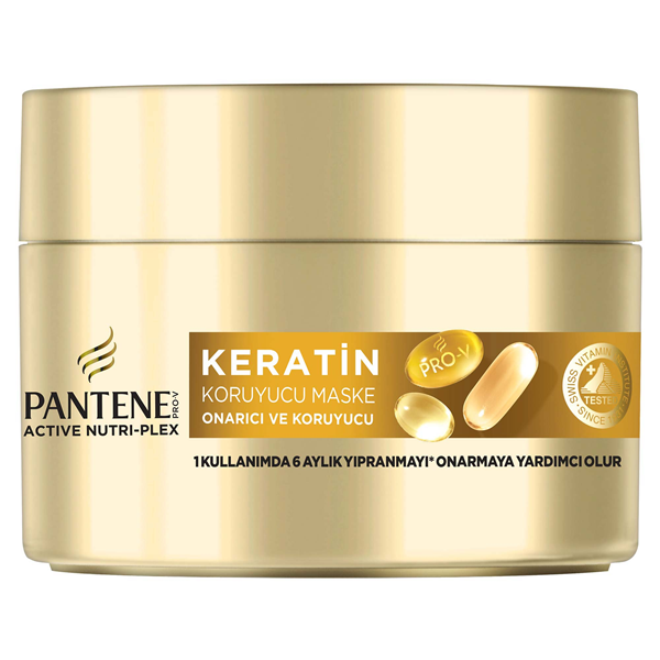 Sadece bir kullanımda 6 aylık saç hasarını onarmaya yardımcı olan Pantene Keratin Koruyucu Maske %50 daha fazla bağ koruyucu ile zenginleştirilen Pro-V formülü ve aktif Nutri-Plex teknolojisi sayesinde, nemini kaybetmiş ve hasar görmüş saçları saç boyunca besleyerek güçlendirir. Keratin Koruyucu Maskeyi nemli saçlarınıza, saç uçlarınızdan saç diplerinize doğru masaj yaparak uygulayın. Zengin formülün saç tellerinize birkaç dakika derinlemesine nüfuz etmesinin ardından iyice durulayın.