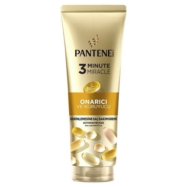 Pantene Onarıcı & Koruyucu 3 Dakikada Mucize Yoğun Saç Bakım Kremi, kolajen peptit ile güçlendirilmiş çok amaçlı yoğun saç bakım kremi, saça anında nüfus ederek saçı saç boyunca yeniler. Sadece 1 kullanımda dahi gözle görülür hasarları onarmaya yardımcı olur.