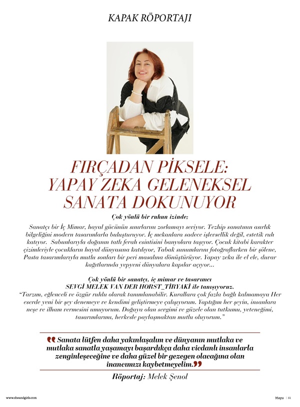 Çok yönlü bir sanatçı, iç mimar ve tasarımcı SEVGİ MELEK VAN DER HORST_TİRYAKİ ile tanışıyoruz.