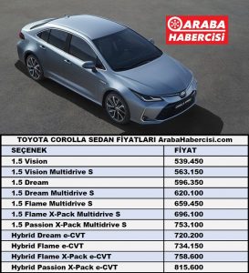 | TOYOTA COROLLA SEDAN FİYAT LİSTESİ ArabaHabercisi.com | |