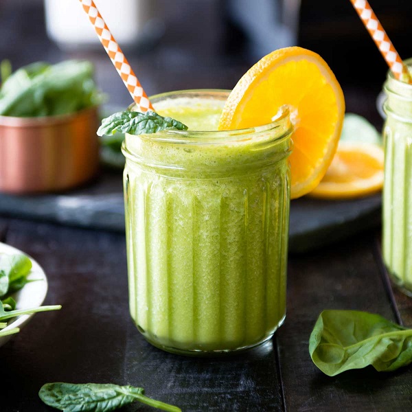 Ispanak çiğ olacak şekilde bütün malzemeleri bir arada blenderdan geçirelim. Bardakta servis yapalım.
